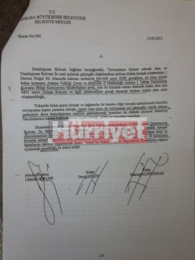 kısmının sit alanıyla kesiştiği, bizzat Belediye'nin