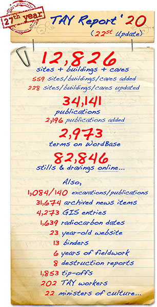 The TAY Project aims to provide a data pool and a scientific reference base accessible to all concerned individuals and institutions, such as: students at all levels; archaeologists, historians and scientists in related fields; museums and other protectors of cultural heritage; individuals/organisations involved in promotional advertising activities about Turkey; the general public; etc.