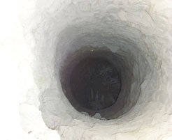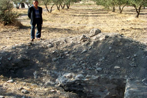 TAYEx arazi çalışmalarında bugüne kadar rastladığımız en derin defineci çukuru: Çapı 4 m, derinliği 11.20! İnanamadık... İçinde merdiven bile var... Hafir ana toprağa kadar inip orayı bile kazmış; Daha da devam etmek için taban suyunu motorlarla boşaltmış... Biz eski muhtarın yalancısıyız. |