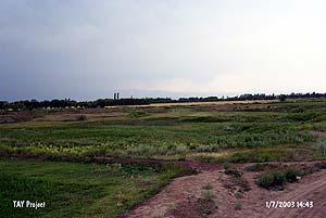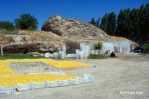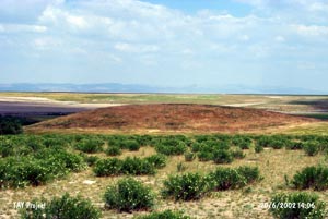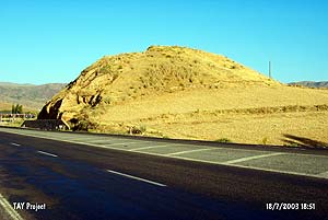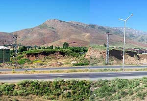 9000 yıllık höyüğün kuzeyinden karayolu geçiyor. Bor Belediyesi, höyüğün güneydoğusundan toprak çekmiş, ama müze duruma el koymuş ve toprağı geri koydurmuş! Bu da arkeo-kara mizah... Niğde / Bor / Türkiye |