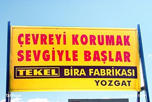 TEKEL Yozgat'ta da bira üretiyor. E güzel! Fabrikanın girişine bir tabela konmuş. E o da iyi! Tabelada bir slogan: "Çevreyi korumak sevgiyle başlar"... Bu ise fevkalade... İnsanın bazı kurumlarla göğsü kabarıyor doğrusu... Buraya kadar herşey iyi de, peki fabrika nerede dersiniz?... (Alttaki resme bir göz atıverin!) |