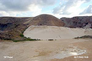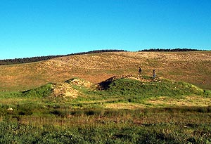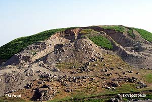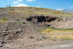 Muş - Bulanık ilçesine bağlı Pulur Köyü'nün hemen yakınında, 2002 yılında, 15 gün boyunca, dozerle yapılmış yasal (!) bir defineci kazısı. Bu dev gibi höyüğün tüm güneybatı yamacı "V" biçiminde yarılmış. Yanıt alamayacağımızı bile bile soruyoruz: 1. Bu kültür katliamı iznini kim(ler) verdi? 2. Tabiat ve Kültür Varlıklarını Koruma Yasası'ndaki yasal defineciliğe izin veren yasa maddesi (50) ne kadar yasal? Bulanık / Muş / Türkiye |