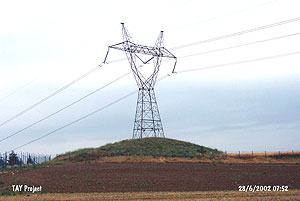 7000 yıllık bir höyük... Dört tarafı tarlalar açmak için kesilmiş. Üzerinde de TEAŞ tarafından dikilmiş GS-154 no'lu yüksek gerilim hattı direği bulunuyor! Elektrik, kültür varlıklarını tahrip ettiğinde daha mı yüksek voltajlara ulaşıyor acaba?! Y. Söğütönü / Eskişehir / Türkiye |