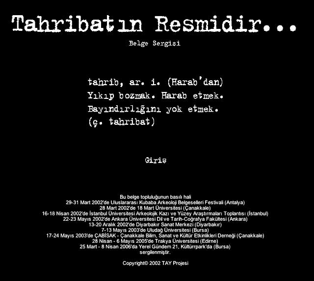 The Archaeological Settlements of Turkey Project - 2000-01 Presentation of Archaeological Destruction in Turkey METU Archaeology Group, Fourth Archeology Days, METU Culture and Congress Centre (Ankara/Turkey) |