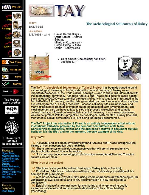 The Internet's First Archaeological Settlement Inventory: The Archaeological Settlements of Turkey (TAY) Project, inet-tr '98, Lutfu Kirdar International Culture and Congress Hall (Macka/Istanbul/Turkey) |