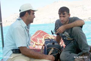 bir höyüğe ulaşmaya çalışırken, sohbet sırasında Halfetili kayıkçı: "Ne bu GPS mi? Bugünlerde de bunun modası başladı." (Birecik Baraj Gölü) |
